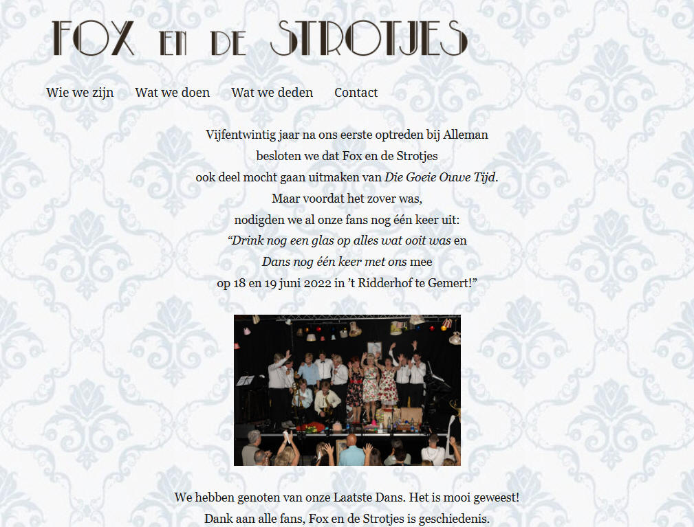 | Hier vind je de websites zo als die in de loop van de geschiedenis in de lucht zijn geweest. Met een beetje geduld (de pagina's laden niet supersnel) maak je een reis terug in de tijd! foxendestrotjes.nl van 2005 tot 2011 foxendestrotjes.nl van 2011 tot 2017 foxendestrotjes.nl van 2017 tot 2022 |
